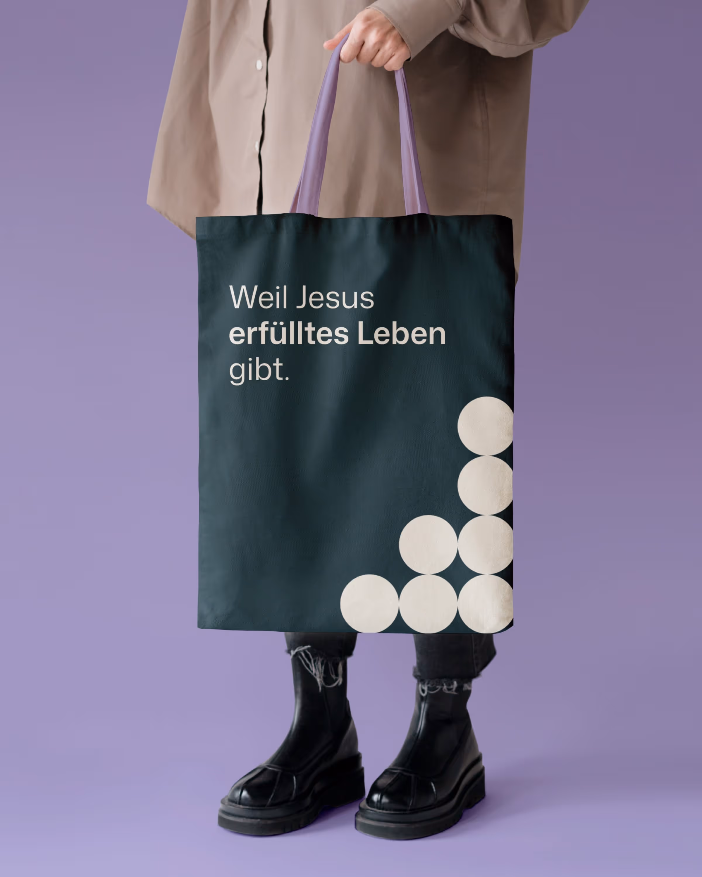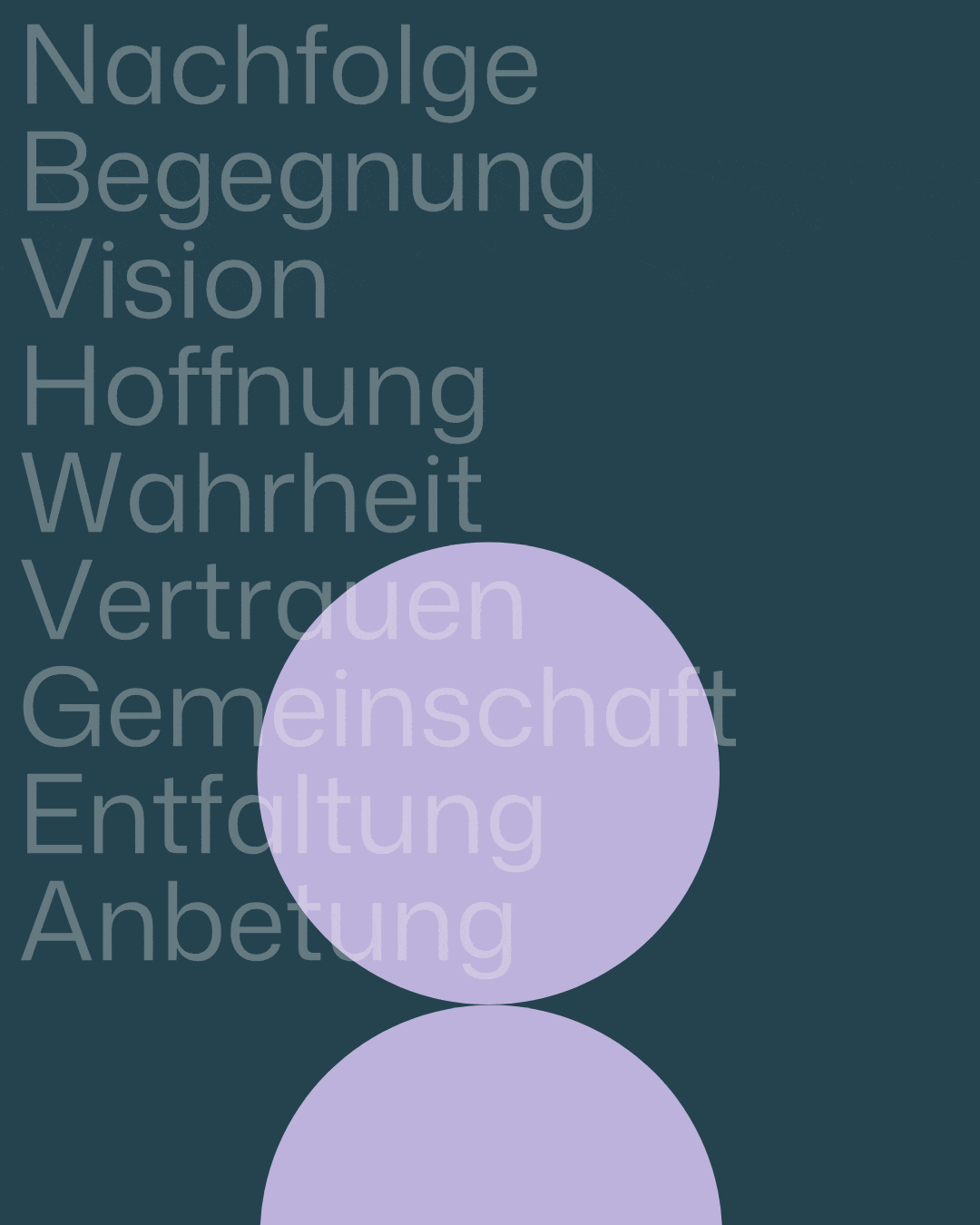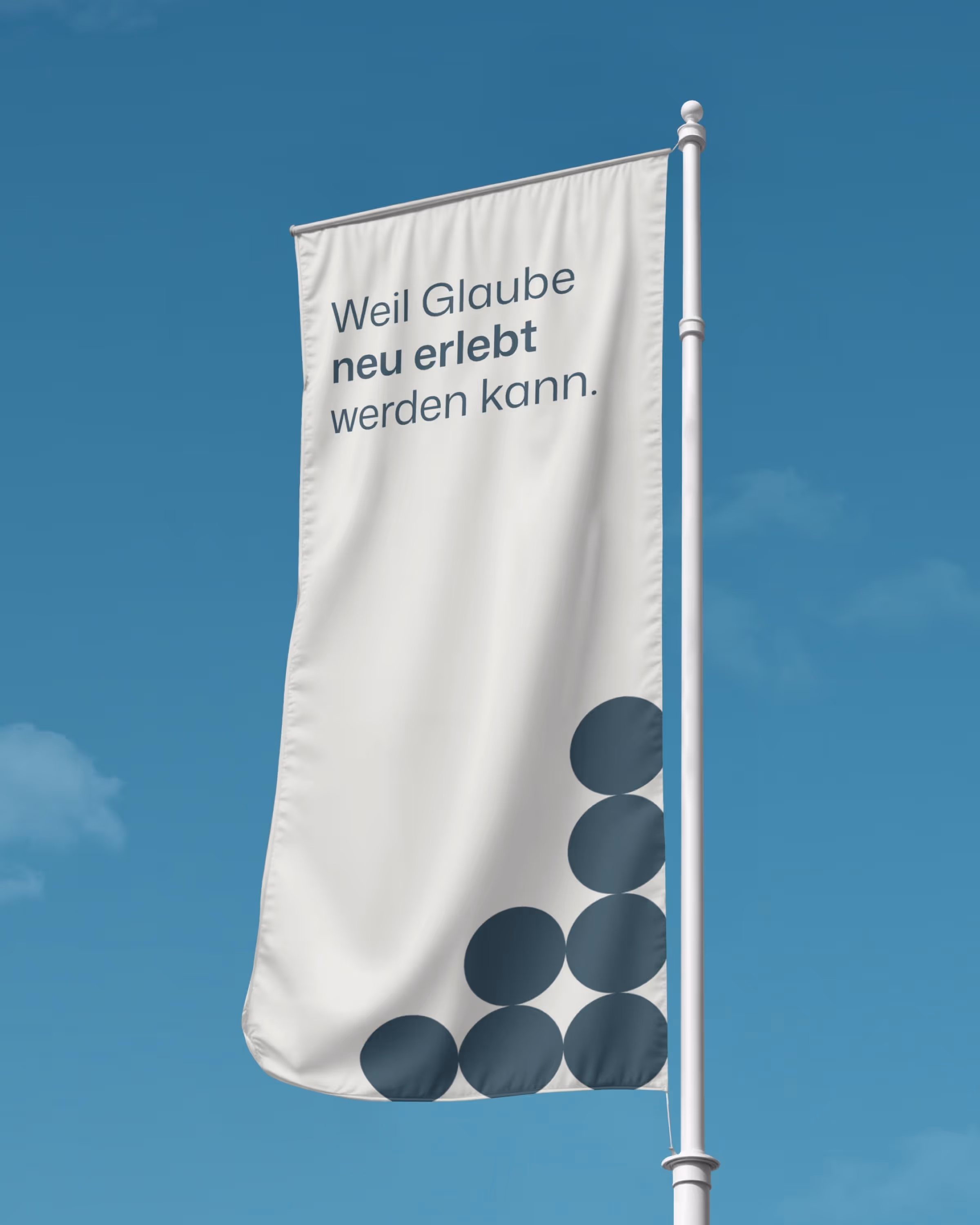 Kreise prägen die visuelle Sprache des Erscheinungsbildes und greifen formal den Stein aus der Bildmarke auf. In unterschiedlichen Gruppierungen eingesetzt, bilden sie ein flexibles grafisches System für Layouts, Illustrationen und digitale Anwendungen. Die Anordnung der Kreise erinnert an eine wachsende Gemeinschaft. Einzelne Elemente fügen sich zu größeren Strukturen zusammen – ein visuelles Prinzip, das den gemeinschaftlichen Charakter der Kirche aufnimmt und zugleich gestalterische Konsistenz schafft.